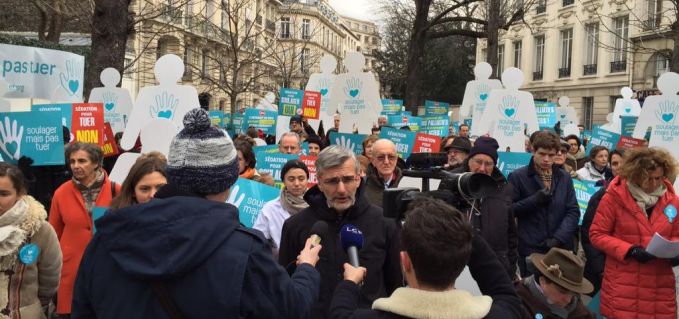 Rassemblement de « Soulager mais pas tuer » à Paris, devant l’Assemblée Nationale, le mercredi 21 janvier 2015.