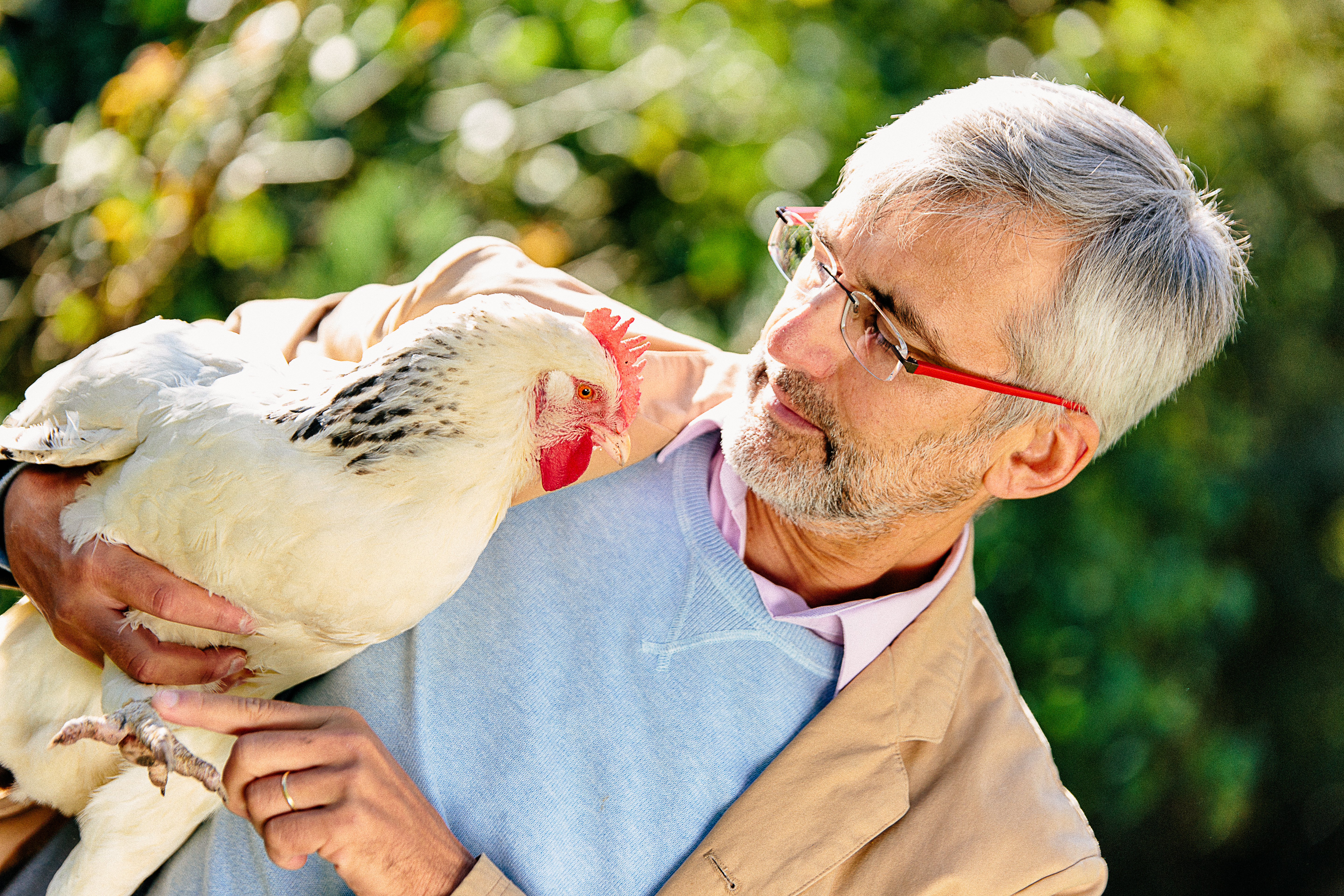 J’élève toujours des poules, pour leurs œufs. Les emmenant en vacances, j’admire leur adaptabilité à divers lieux de vie. Pas si bêtes ! Chacune a son caractère. Il faut voir une mère-poule se sacrifier pour ses poussins, lançant en l’air un vermisseau. Elle a un caquetage précis qui leur dit : « Bon à manger ! »